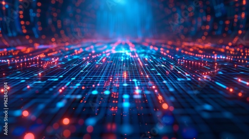 Interconnected cyber cells, quantum computer networks and global electronic data connections serve as an abstract technological backdrop.
