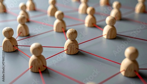 Interconnected Wooden Figures: Visualizing Social Networks, Communication, and Community Bonds