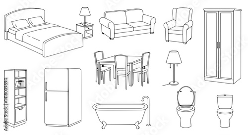 Interior Furnishing Array: A comprehensive array of interior furnishing, each meticulously crafted to portray diverse functions for home, illustrating versatility and essential elements in a dwelling.