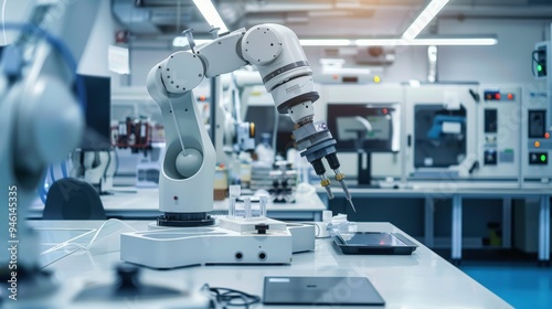 Interior of a robotics engineering lab with various prototypes and testing setups, highlighting innovation in automation