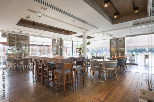 Interior of an elegant riverside cafe