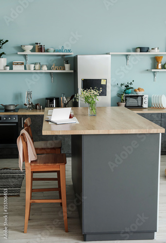 Interior of modern kitchen with stylish table