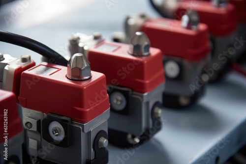 Interlock switches up close in a manufacturing facility.