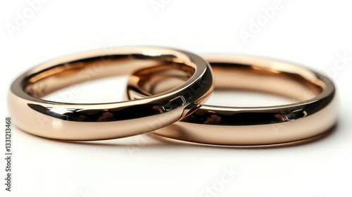 Interlocked gold rings gleam on a white surface, symbolizing love and commitment