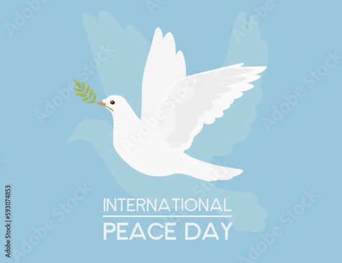 International peace day sign with white pigeon bird and green leaves vector illustration