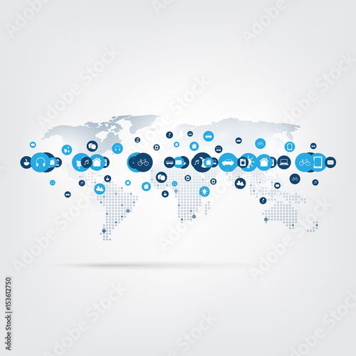 Internet of Things, Cloud Computing Design Concept with Icons - Digital Network Connections, Technology Background