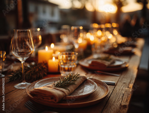 Intimate dinner gathering at sunset outdoor dining experience romantic atmosphere candlelit table cozy setting culinary delight