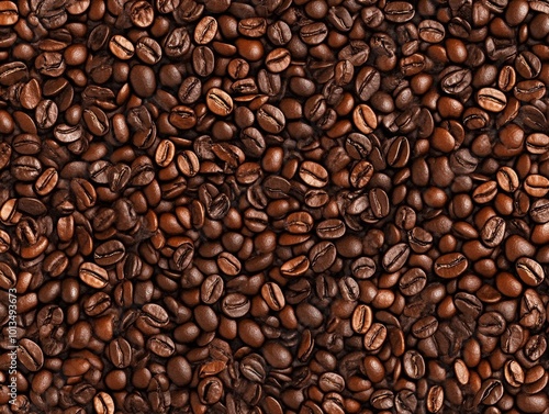 Intricate Arrangement of Coffee Beans, Close-up Texture of Roasted Coffee Beans