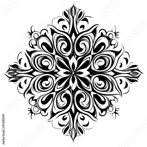 Intricate Black and White Floral Mandala Design, Perfect for Decorative Purposes.