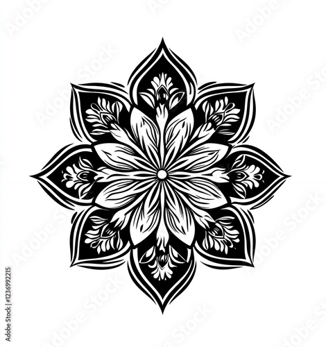 Intricate Black and White Floral Mandala Design Symmetrical Ornament Circular Pattern Spiritual Art