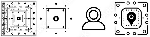 Intricate designs featuring geometric patterns and symbols showcasing a modern artist's style in a creative studio