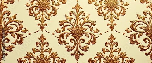 Intricate floral damask pattern, antique gold accents on ivory, just married, scroll