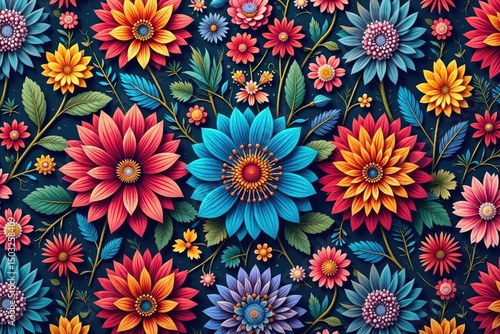 Intricate floral design repeats endlessly, vibrant colors , repeating, dainty, blossom