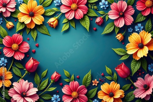Intricate floral pattern, vibrant blooms & leaves, blue, pattern, art