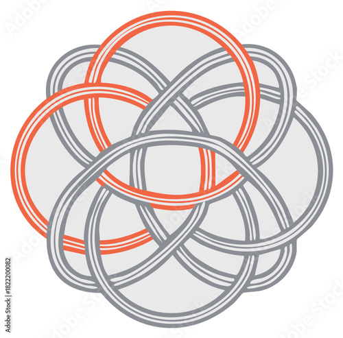 Intricate geometric knot pattern with interwoven orange and grey loops