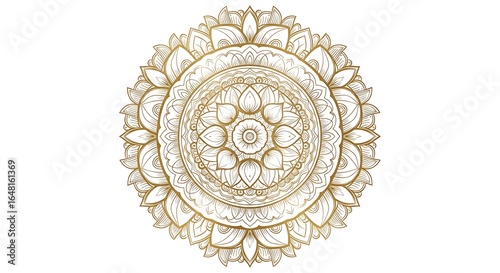 Intricate golden mandala pattern isolated on white background