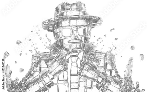 Intricate Ice Sculpture of Human Figure Shattering into Pieces.