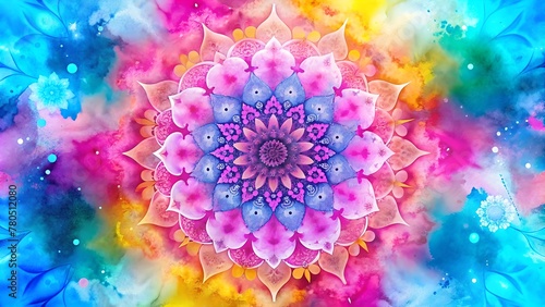 Intricate mandala design. Muslim ramadan islamic concept. Delicate watercolor flower mandala pattern in pink, violet and yellow tones. Generative AI