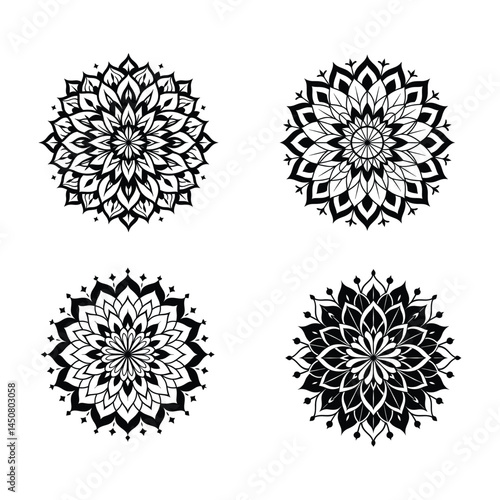 Intricate Mandala Designs Black and White Floral Vector Set
