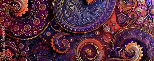 Intricate paisley pattern texture background, 4K hyperrealistic photo.