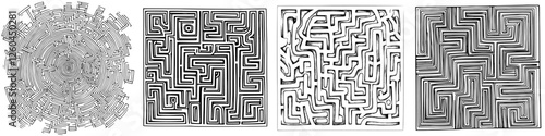 Intricate patterns of amazing mazes designed for puzzle enthusiasts displayed in a grid format