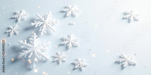 Intricate snowflakes on white background with subtle sparkle effects, frosty atmosphere, pattern design, snowflakes