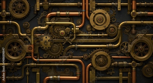 Intricate Steampunk Gears and Pipes Seamless Industrial Background Texture