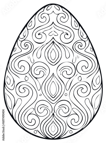 Intricate symmetrical ornate Easter egg outline with detailed swirling decorative patterns for coloring