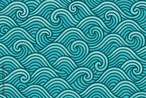 Intricate teal waves pattern creates a soothing and rhythmic ocean feel in this vibrant design work