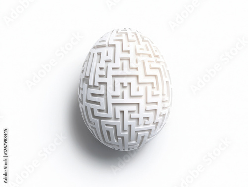 Intricate white maze design on egg, symbolizing puzzle challenge