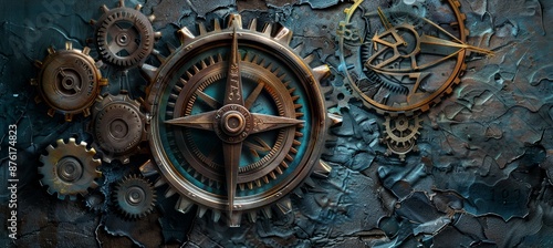 Intricately Detailed Metallic Gears Forming a Compass Symbolizing Precision in Engineering Design