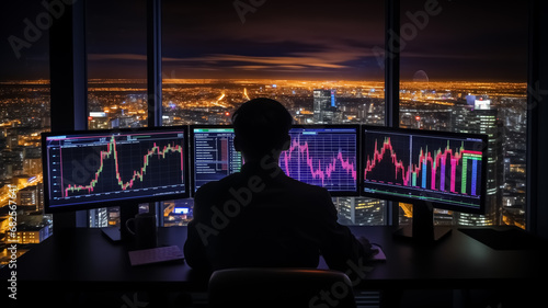 Investment and trading in stock market on the computer screen.Stock chart concept.Financial Data Analysts.Crypto Currency graphic. Successful trader.