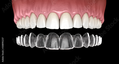 Invisalign braces or invisible retainer. Medically accurate dental 3D illustration