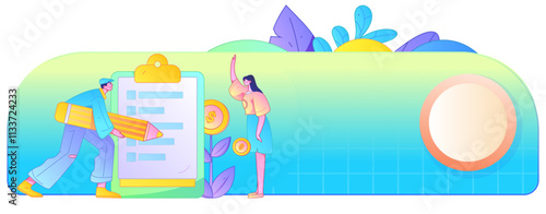 Invite friends to conduct questionnaire flat vector concept operation hand drawn illustration