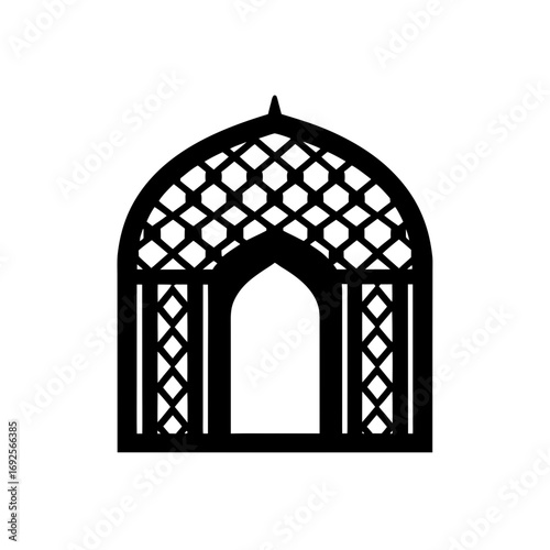islamic arch with lattice work silhouette vector