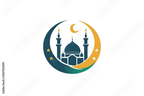 Islamic Mosque Logo Design with Crescent Moon and Stars