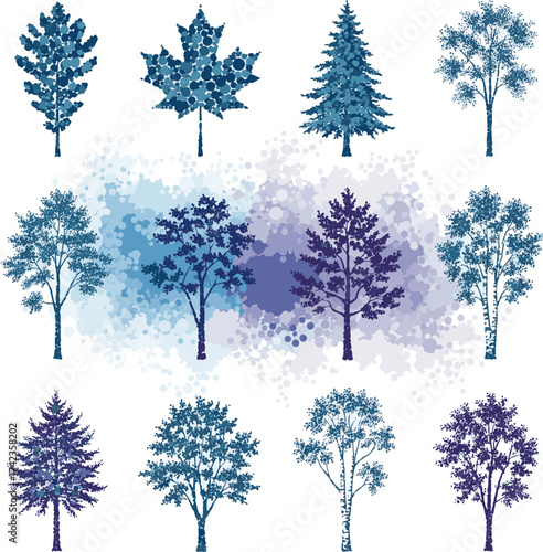 Isolated a kinds of deferent tree on sky abstract texture dot vector art with white background.