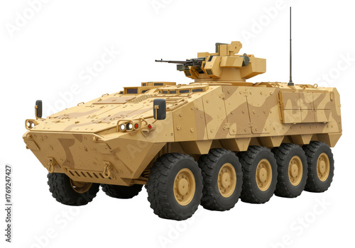 Isolated armored vehicle is equipped with an automatic cannon and all-wheel drive for military tasks