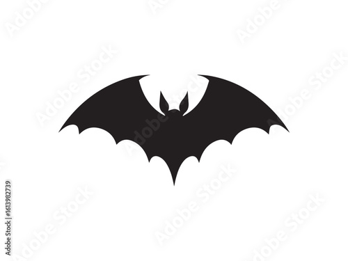 Isolated Bat Silhouette on White Background, Black Flying Creature, Halloween Decoration Icon
