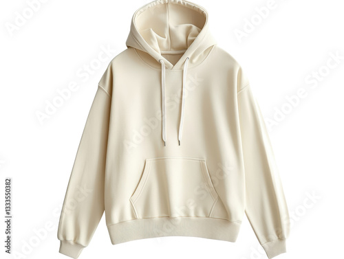 Isolated Beige Pullover Hoodie with Ribbed Hem and Cuffs