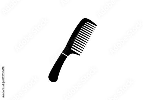 Isolated black silhouette of a comb with a handle on a plain white background image