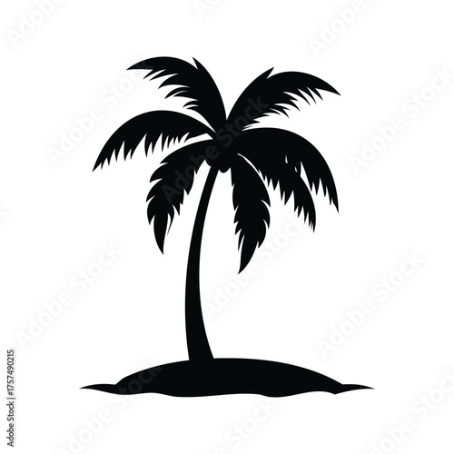 Isolated Black Silhouette of a Palm Tree on an Island Paradise, palm tree on beach silhouette vector illustration