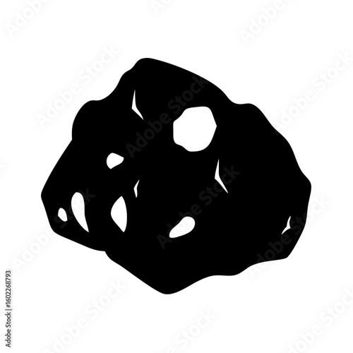 Isolated black silhouette of a porous, eroded rock with multiple holes