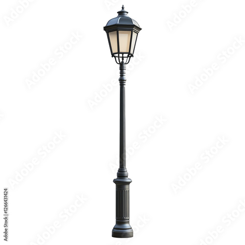 Isolated black street lamp on a Transparent background showcasing intricate design and classic style for various creative projects