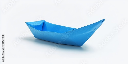 Isolated blue paper boat on a white background, featuring a clear clipping path, perfect for showcasing creativity and simplicity in design. Explore the charm of the blue paper boat.