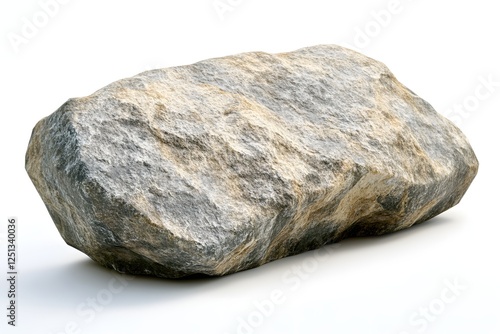 Isolated Boulder on White Background Showing Rough Texture and Natural Stone Pattern Detail