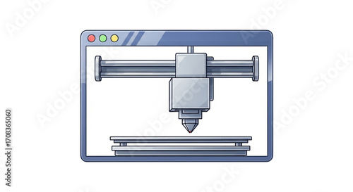 Isolated CAD CAM prototype manufacturing machine, automated digital production factory illustration