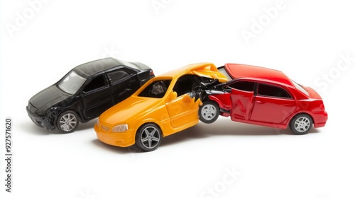 Isolated Car Accident Scene: A Striking Depiction of Vehicle Collision on a White Background