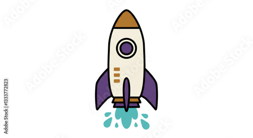 Isolated Cartoon Rocket Launching Upwards with Vivid Flames, Representing Space Exploration and Boundless Ambition