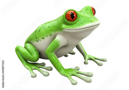 Isolated Cartoonish Green Tree Frog with Red Eyes
